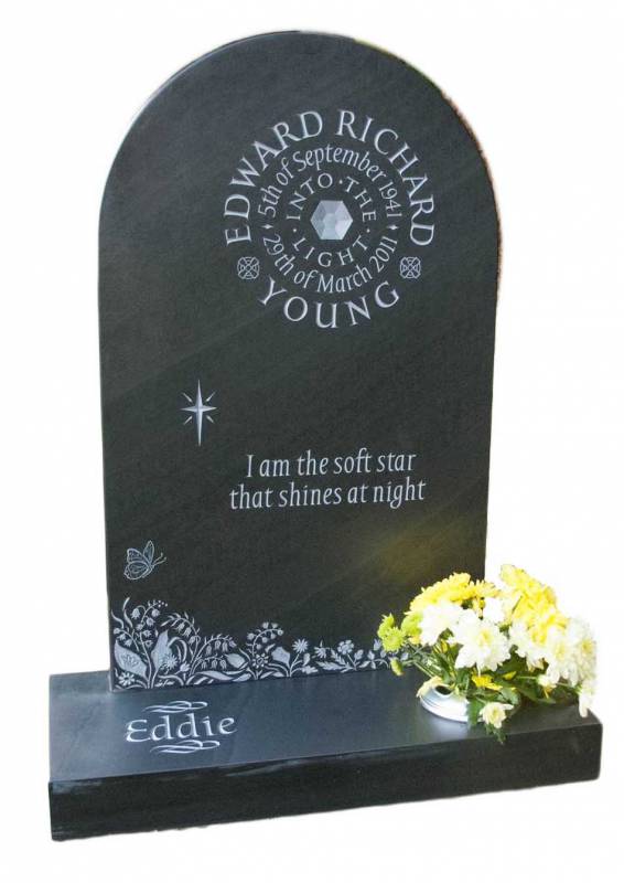 We use natural, softer stones such as grey granite, slate and English stone where we can make intricate designs and carvings offering a unique memorial.